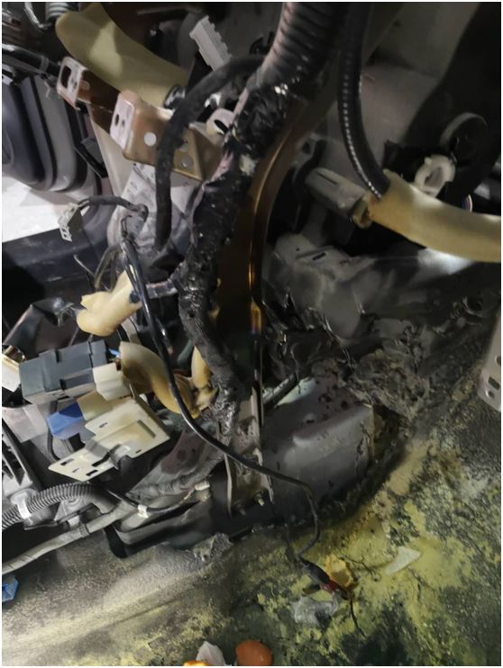 第二天正值2019年济南的第一场雪,小伙伴开着所有窗一路飞驰去上班,别人还以为这孩子是见到雪激动的?!殊不知是车内多碳醇你的味道挥之不去。。。此时悲催的事发生了,由于空调开的太高,挥发出来的正丁醇估计达到了闪点(正丁醇闪点:闭口35℃,开口40℃),车内瞬间起火了,小伙伴的手被烧伤了。。。。。。