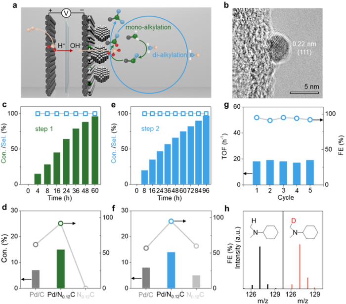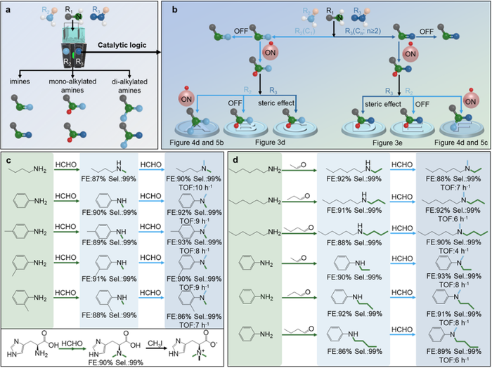 图5. Pdδ−-H电催化剂上可编程胺烷基化