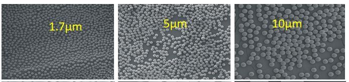 图1:相同倍数下1.7-10um填料(来源:纳微单分散微球)