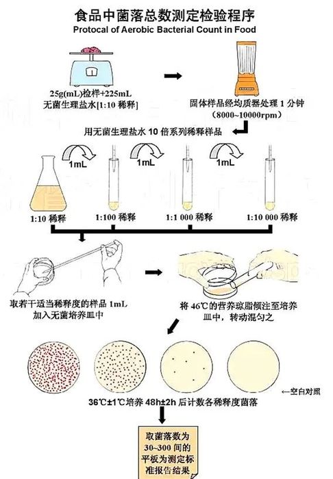 ●选取菌落数在30-300之间的平板作为菌落总数的测定标准。