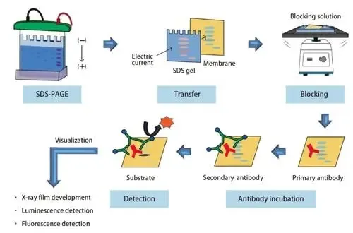 蛋白质免疫印迹法是基于蛋白质SDS-PAGE电泳分离和特异性抗体识别蛋白的特性,通过显色技术,以达到检测目的蛋白的技术。该技术广泛应用于定性检测蛋白水平的表达,活性分析与鉴定。