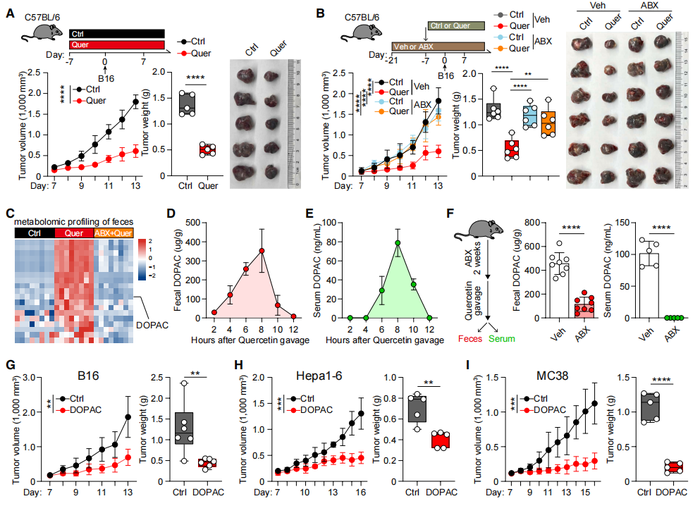 图:膳食槲皮素衍生的 3,4 -二羟基苯乙酸(DOPAC)可抑制肿瘤生长