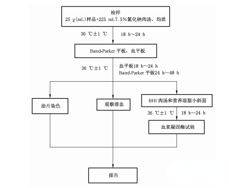 结果报告:在25g(mL)样品中检出或未检出金黄色葡萄球菌。