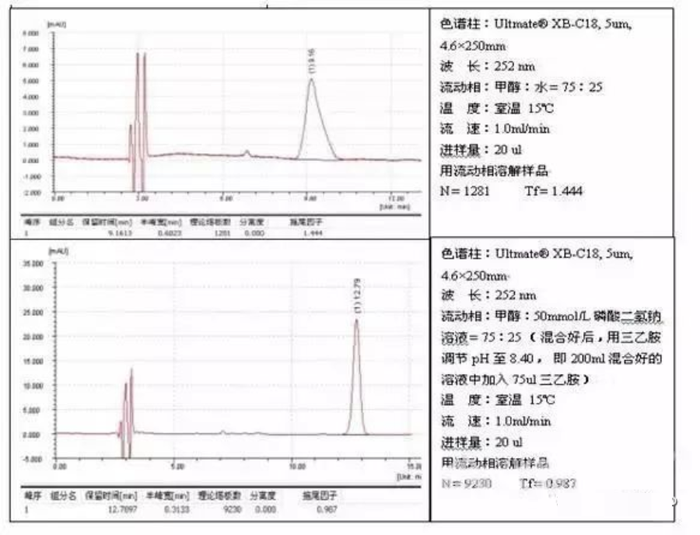 加入三乙胺改善峰形的时候,有两点需要注意: