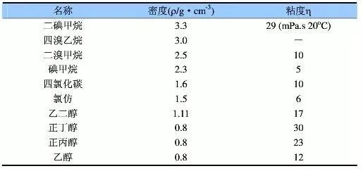 在HPLC发展的早期,常采用“等密度法”来填装高效柱。多孔硅胶的骨架密度较高。例如,LiChrospher 100的表观密度约为2.3g/cm3,LiChrospher 500 为2.46g/cm3,LiChrospher 1000 为2.49g/cm3。不同牌号的硅胶因制法不同(例如,含有超细孔和封闭孔者表观密度小)而有差异,但多在2.2g/cm3以上。因此,需以高密度溶剂配制密度与硅胶骨架密度相近的混合液。常使用的高密度溶剂为碘代和溴代烷类(表1),再与适当比例的其他溶剂相配,配制出具有密度适宜的液体,使填料能呈“失重”状态悬浮于匀浆液中,以从容地用高压泵将其压入空色谱柱中,制出填装均匀的高效色谱柱。