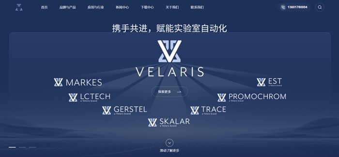 在全新上线的中国官网 www.velaris.cn,您可以看到旗下 GERSTEL 和 Skalar 两大品牌: